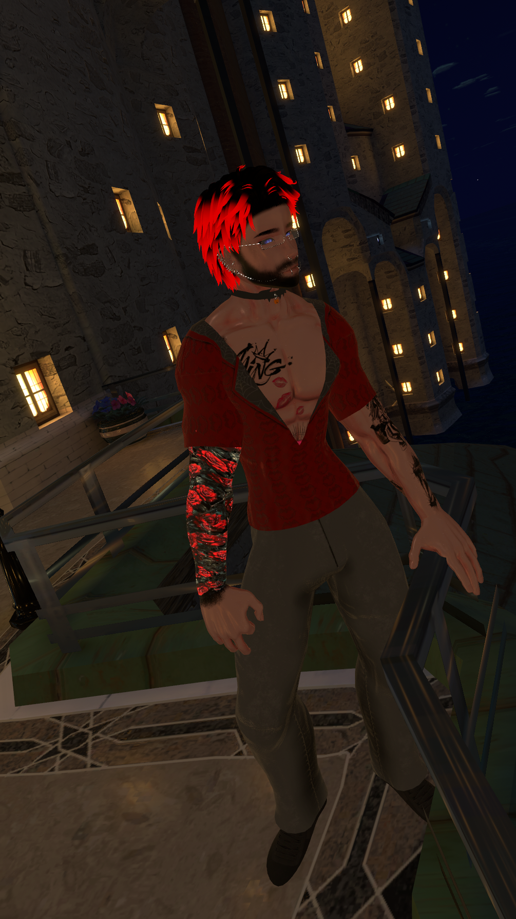 - skin tight shirt, croptop, low v shirt, arm bandages, underwear, sweat pants, dress pants, glasses, face piercings, surgical gloves, lab coat, blood decal, beard decal -me